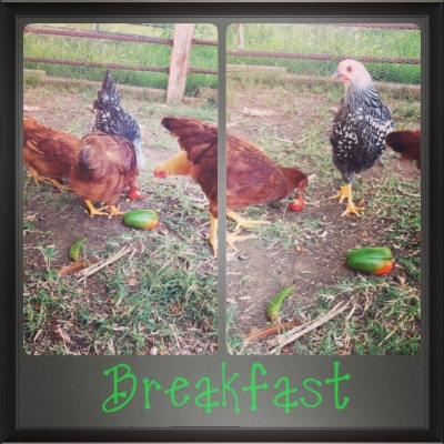 My husband is right. I do spoil them. He accused me of letting the tomatoes and bell peppers from our garden get overripe so I have a good excuse to give them to the chickens. (Busted! I don’t like either of them, anyhow.) And I was giddy when he sliced open a growing watermelon with the weed-eater. So were the hens.