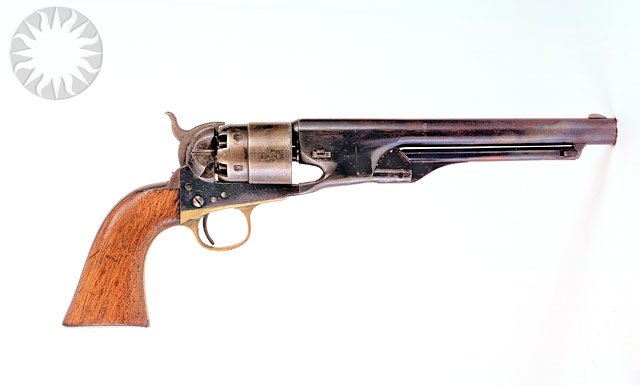 https://www.flickr.com/photos/publicresourceorg/ United States Colt M1860 Army revolver, .44 caliber. .The Colt Model 1860 Army revolver was manufactured from 1860 through 1873. The total production consisted of more than 200,000. The six-shot, .44 caliber revolver was the primary handgun used by Union troops during the Civil War because of its reliability. ..Credit: Rich Strauss (Smithsonian Institution) United States Colt M1860 Army revolver, .44 caliber. The Colt Model 1860 Army revolver was manufactured from 1860 through 1873. The total production consisted of more than 200,000. The six-shot, .44 caliber revolver was the primary handgun used by Union troops during the Civil War because of its reliability. Credit: Rich Strauss (Smithsonian Institution)