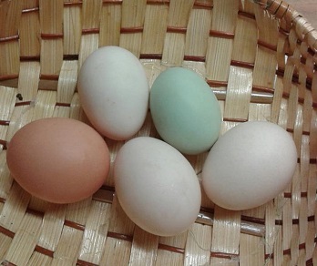 The photo below is shared by our Facebook follower Ruth Staveley. The blue egg is her Cream Legbar’s firs egg. That is such a pretty color! You can see the Araucana bloodline in it!