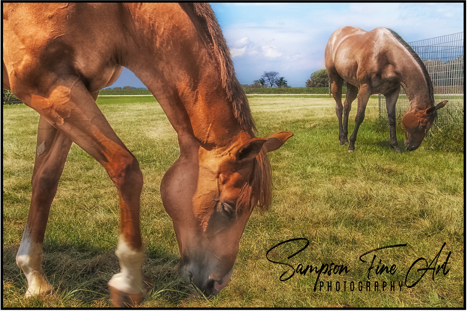 NC Smokey Mountains, Outside Asheville My wife & I were going to be moving from Chicago out to Raleigh NC. Before we made the final move we took a trip out to Raleigh to take a look at the place, since I had never been there before, and we wanted to see the place we would be renting from relatives. We were both super excited, see we both love to get in the car and just go! We're both adventurers, and both photographers, I had never been much anywhere South or East of Chicago, so I was charged up to hit the road ( and to get out of Chicago for good ). It had been in October, and the leaves were changing colors. We had decided to go South through Tennessee and into North Carolina and check out Asheville. So we ended up going through the Smokey Mountains on a day that was pretty over cast. We were driving by some awesome looking scenery and we decided to just pull off at the next exit we could find. We ended up coming along this cemetery on this hill, and a beautiful church below, by the road. We pulled of the road by that church and just started photographing, the colors we so vibrant, the sky was all over cast, and that is beautiful lighting for photography ( no shadows ). The atmosphere was magical, with no one around, we felt that God had led us to this beautiful location just for us. We spent about an hour there photographing. Got back in our car, and came upon this beautiful fenced in farm with these horses, just a perfect scene to compose this image of the horses grazing, just like a painting. https://www.facebook.com/SampsonFineArtPhotography/