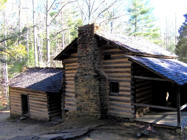 https://upload.wikimedia.org/wikipedia/commons/6/61/Elijah-oliver-cabin-tn1.jpg The Elijah Oliver Cabin in Cades Cove, in the Great Smoky Mountains of Tennessee, USA. This cabin is a "dog-trot" cabin, with the kitchen being located in the detached back section. The cabin was built in 1866.