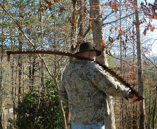 You couldn’t hardly pull a crosscut saw with Dad because he would ride the handles. That meant extra work on the other end of the saw. I and Mama had the rhythm figured out. We could cut faster than a chain saw today. Usually we fell five or six trees, then cut them into eight foot logs. It’s hard work. I’ve blooded my knees a many of a time pulling a crosscut saw all day long.